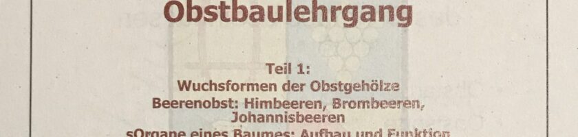 Wir haben zum ersten Mal einen 2-teiligen Schnittkurs für Einsteiger durchgeführt, beginnend mit einem drei-stündigen Theoriepart. Dort gab es schon einige Oha- und Oho-Erkenntnisse zu Themen, die man bisher vielleicht nicht ganz so gut gemacht hat, z.B. Wasserschosse entfernen. Der Praxisteil fand bei widrigem Wetter im Garten der Lebenshilfe statt. Zum Einstieg wurde ein kleiner Zwetschenbaum in Form gebracht, danach