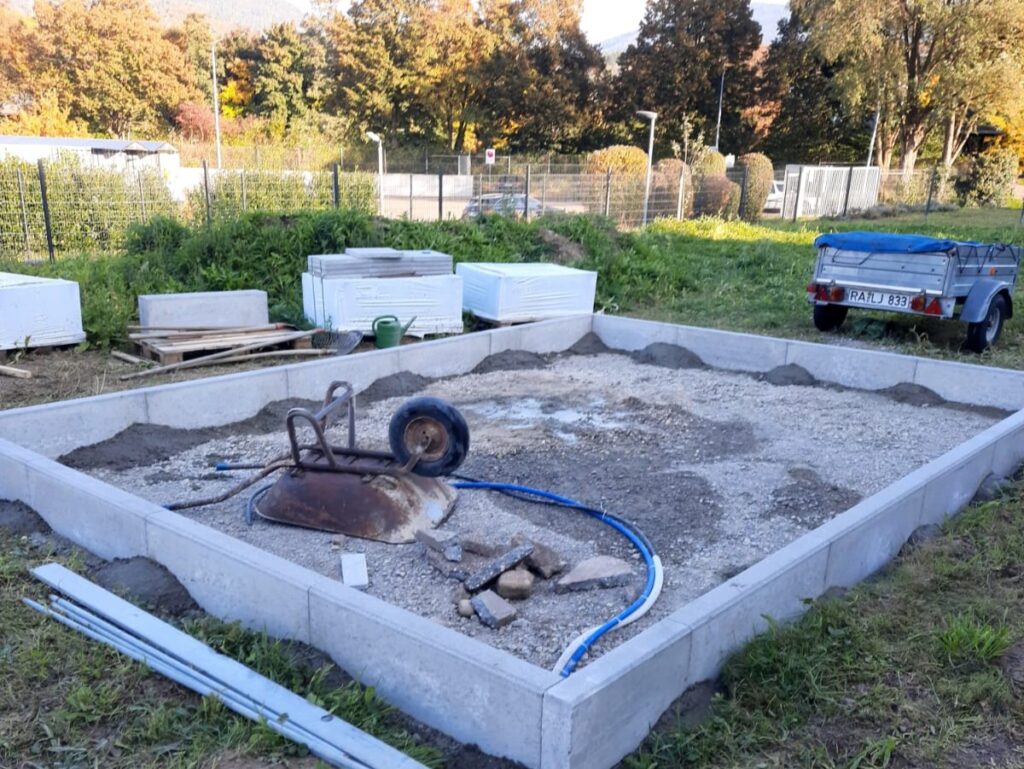 Heute wurde am Fundament für unsere Gartenhütte weiter gearbeitet. Karl-Anton Wunsch, Rudi Heck und Martin Wörner haben es in einer extra-langen Schicht geschafft, das Fundament so herzurichten, dass unsere Hütte demnächst aufgestellt werden kann.